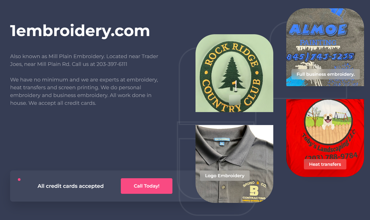 We have the most professional embroidery machines. We have no minimum and embroider on your own apparel or ours.